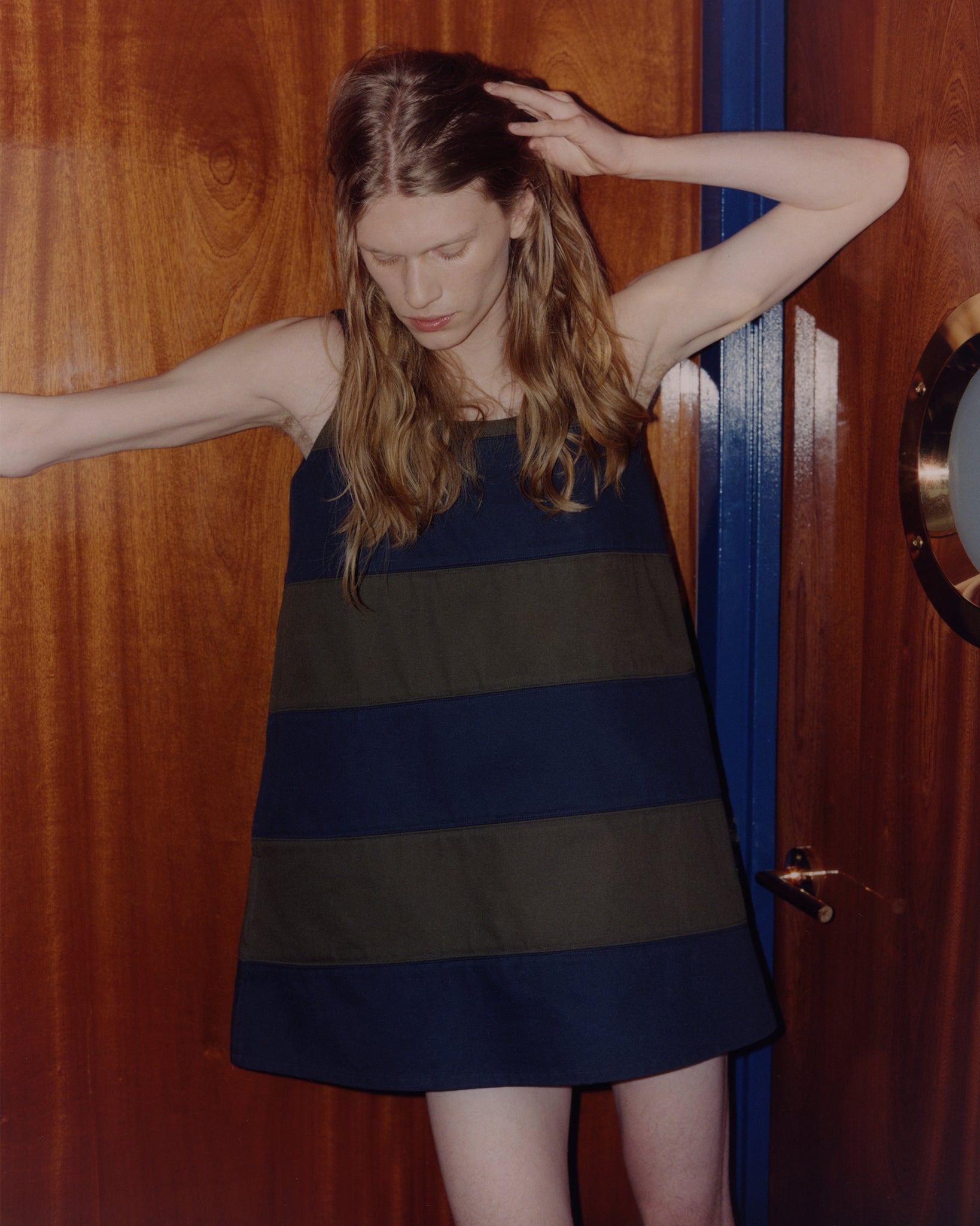 Blue/Ecru/Ocre "Twisted Seam" Long Sleeve Polo